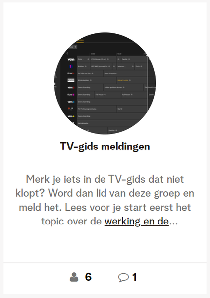 Alle meldingen die betrekking hebben tot de TV-gids mogen jullie vanaf nu melden in deze groep. Lees zeker het topic 'TV-gids meldingen: werking & voorwaarden' voor je van start gaat.