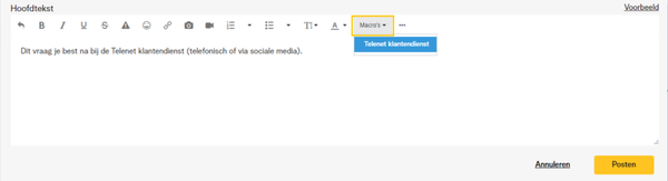 Bepaal altijd eerst een titel voor jouw macro (bijvoorbeeld ‘Telenet klantendienst’)