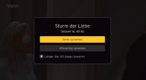 Je ziet nu in het opnamescherm de naam van de serie en aflevering die je gaat opnemen.