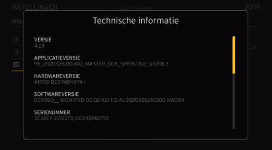 Vorige week (02/12) is Telenet gestart met de uitrol van de software versie 4.28 op de TV-box. Normaal zou iedereen komende woensdag (09/12) de nieuwste versie moeten hebben. Is dat niet het geval? Herstart je TV-box dan eens via de knop achteraan of wacht nog enkele dagen af. Mogelijks stond je TV-box niet in 'snelle start' en duurt het iets langer om de update binnen te halen.