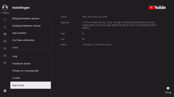 - In gevallen (dalend met elke release) waar de TV-box stabiliteit ernstig in gevaar komt, zal een spontane reboot of een herstart van de UI toepassing geïnitieerd worden (je ziet dan de 'welkom' en 'even wachten' schermen).