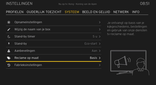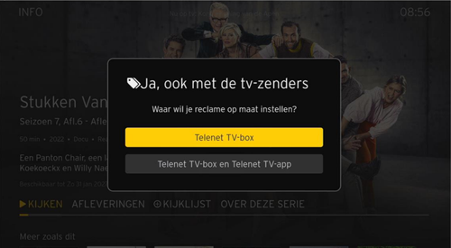 Als je een programma wil bekijken waarvoor een hogere instelling van 'Reclame op maat' nodig is, krijg je deze vraag te zien vooraleer je dat programma kan bekijken.