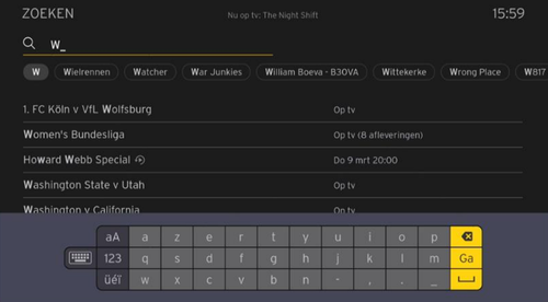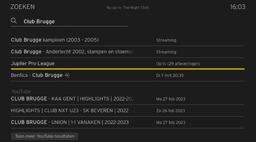 - bij zoeken worden verschillende resultaten (ook terugkijk-TV en opnames) samengeklapt onder de TV-theek noemer