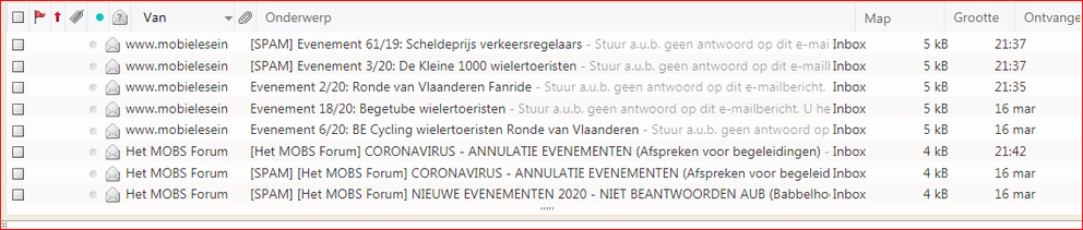 Of het nu als [spam] aangeduid wordt of niet lijkt nu totaal willekeurig te gebeuren ... zowel afkomstig van "webmaster" als van "evenementen" zijn er nu sommige mails wel en sommige mails niet als [spam] gemarkeerd.