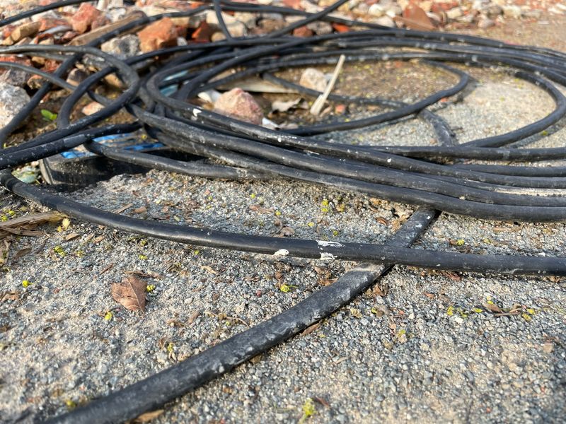 Die rol met "extra lengte" aan aftakkabel, die nog door Fluvius ingegraven en aangesloten moet worden, is echter niet beschermd geweest ten opzichte van werf-verkeer, passerend verkeer in de straat, etc. Zodoende ziet die er vandaag als op bijgaande foto uit: de kabel is over vrijwel de hele lengte platgedrukt en dergelijke.