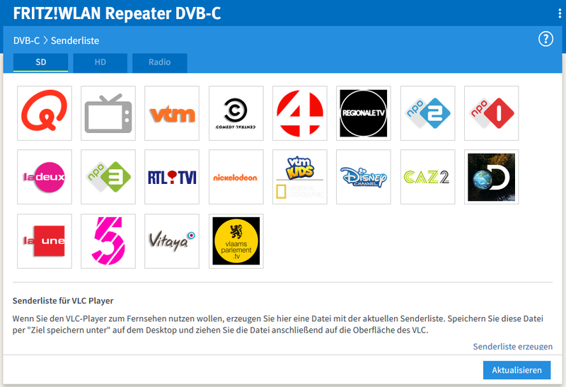 Als "server" gebruik ik hiervoor de Fritz!DVB-C Repeater: