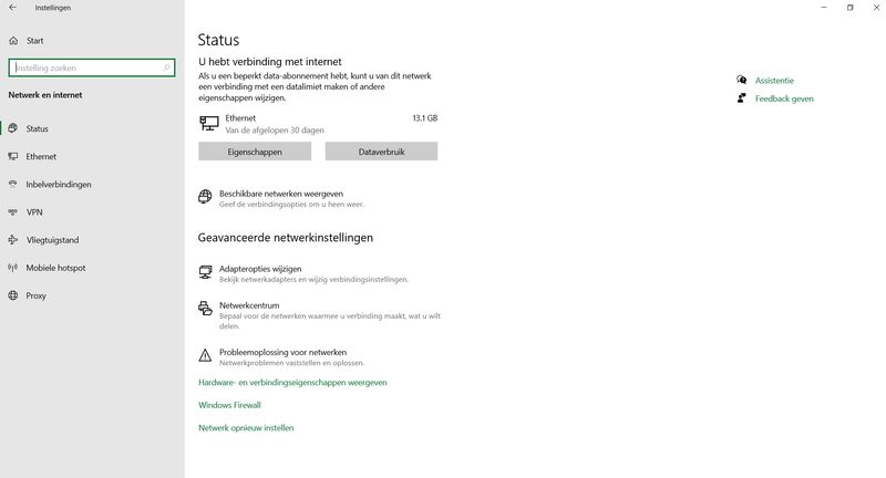 Probeer eens "Netwerk opnieuw instellen" onder aan de pagina op het screenshot.