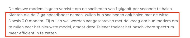 Ik versta hier uit: klanten met een Docsis 3.0 24x8 modem die 1Gbps willen behouden zullen hun modem moeten gaan omruilen voor een nieuwer type.