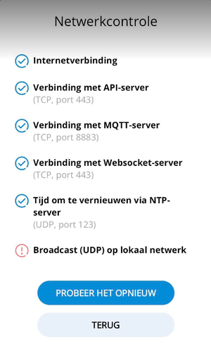 Ik installeerde ledspotjes van het merk Wiz. Die moet ik met een app bedienen. Bij het installeren/koppelen van die spotjes krijg ik telkens een foutmelding 'Broadcast (UDP)'. Zie hieronder. Iemand enig idee hoe ik dit oplos? En is het ook veilig om zo'n wijzigingen te doen?
