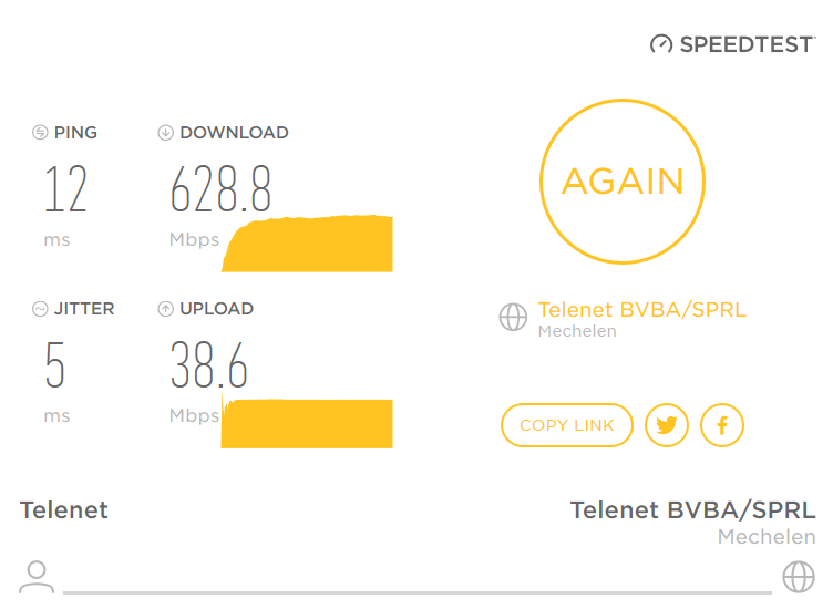 De snelheid om 22:45 uur (6/11/2019) met een server van Telenet.