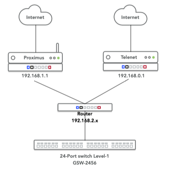 (1 voor verbinding naar LAN poort Telenet, en een andere voor verbinding naar LAN poort Proximus)- Moet de router best in een ander subnet (192.168.2.x) zitten dan de 2 modems?