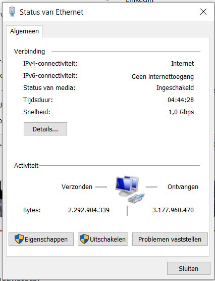 Wanneer ik dieper ga graven stel ik vast dat het IPv6 standaardgateway ontbreekt.