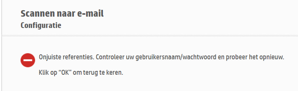 Heb volgende instellingen ingegeven , maar werkt absoluut niet, reeeds meerdere malen herstart en alles uit geprobeerd, krijg het niet voor mekaar om scan naar mail te doen