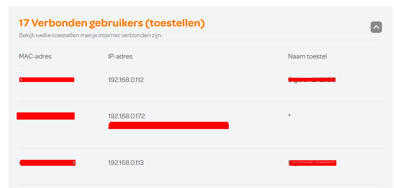 De Telenet app voor Android geeft als je verbonden gebruikers neemt WEL de naam van het toestel, en WEL het ip adres, en mac adres. Dus waarom kan de app meer dan de webversie? Niet iedereen heeft een smartphone. Dus ik vind dat men dit ook in de webversie van Mijntelenet moet kunnen weergeven.