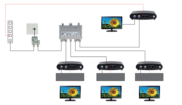 Hiermee kan je vlotjes 3 kamers voorzien met internet over Moca, en 4 TV's aansluiten ... zonder splitters.