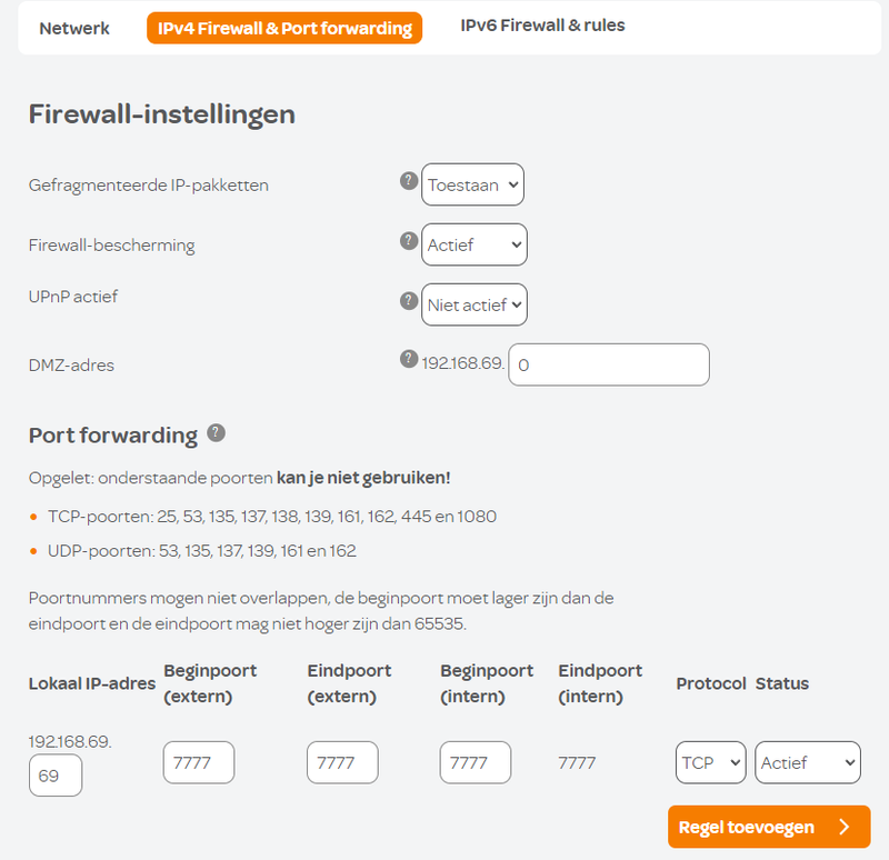 Ik probeer een poort (7777) te openen op mijn Windows 10 laptop, zodat ik hier een game server op kan draaien en anderen hiermee kunnen verbinden.