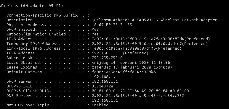 Probleem is dat , wanneer ik op internet geraak , dit na een tijdje uitvalt ,en er een melding komt :Wifi heeft geen geldige ip-configuratie.