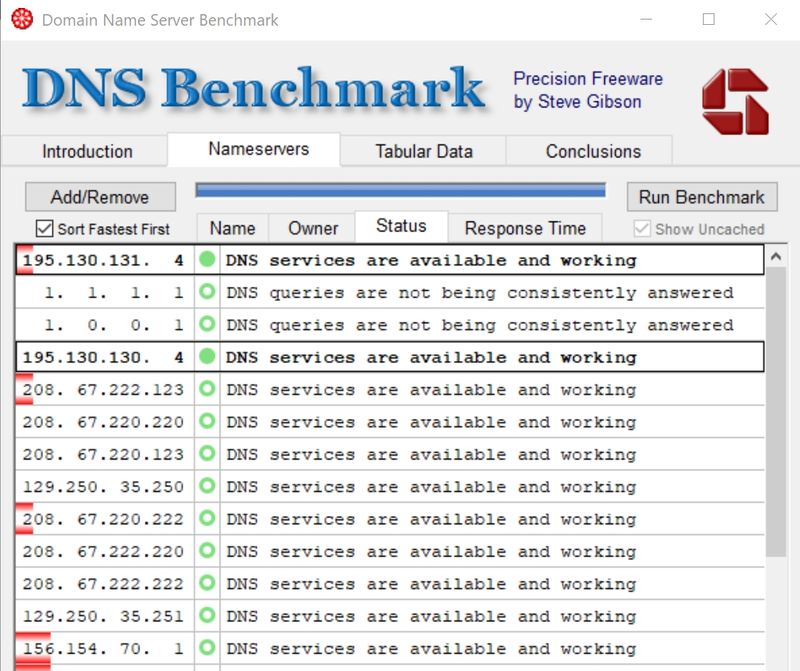 Ik heb in het verleden DNS Benchmark van Steve Gibson verschillende keren gebruikt. Google en Cloudfare geven geen significant voordeel tegenover de servers van Telenet.