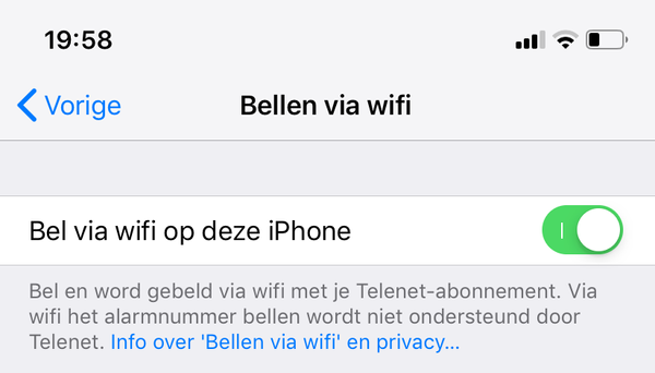 Nu, ik heb een iPhone 7 --> kan Telenet als de bliksem maken dat ook deze toestellen kunnen genieten van VoWiFi.