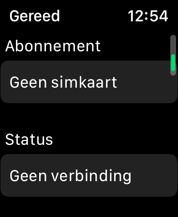 op de apple watch komt " geen mobiel netwerk" bij abonnement "geen simkaart" en bij status "geen verbinding"
