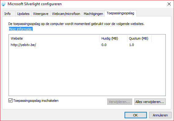 Verwijder je volledige browsergegevens en probeer de toepassingsopslag in het configuratiescherm van Silverlight leeg te maken.